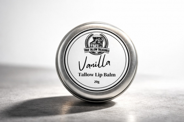 Our tallow lip balm is scented with either vanilla (Vanilla Planifolia) or